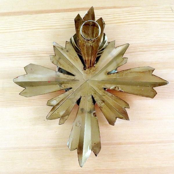 メキシコのアンティーク調に作られたブリキの十字架の壁飾り。