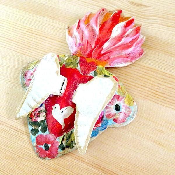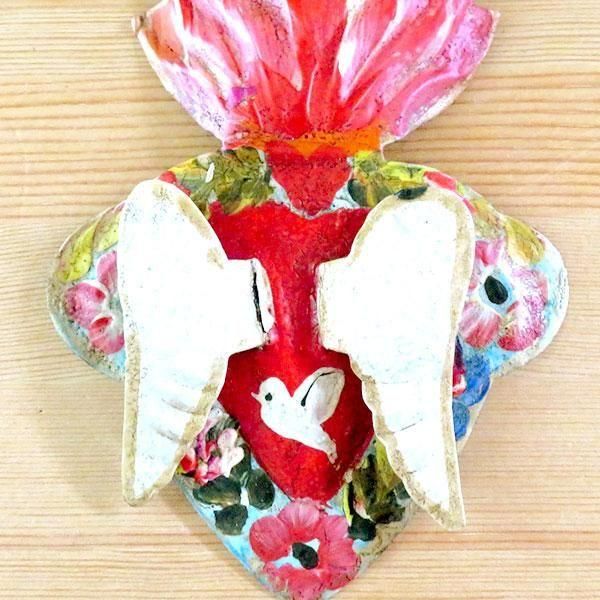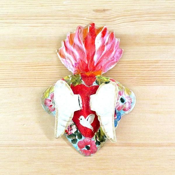 メキシコのアンティーク調に作られたハート型ブリキオーナメント。