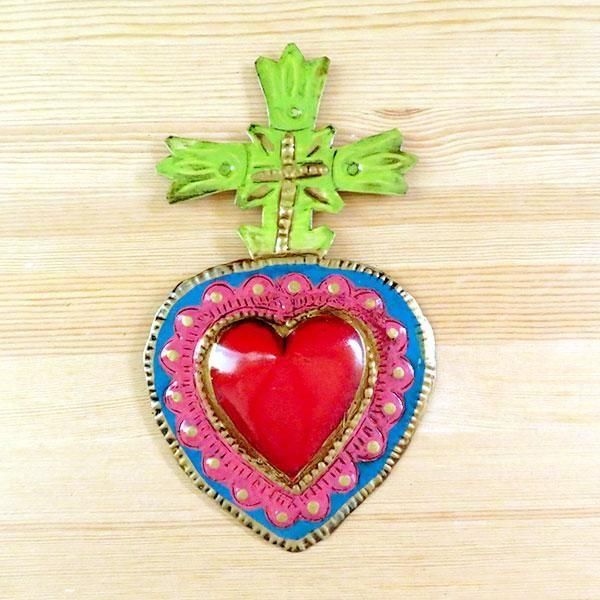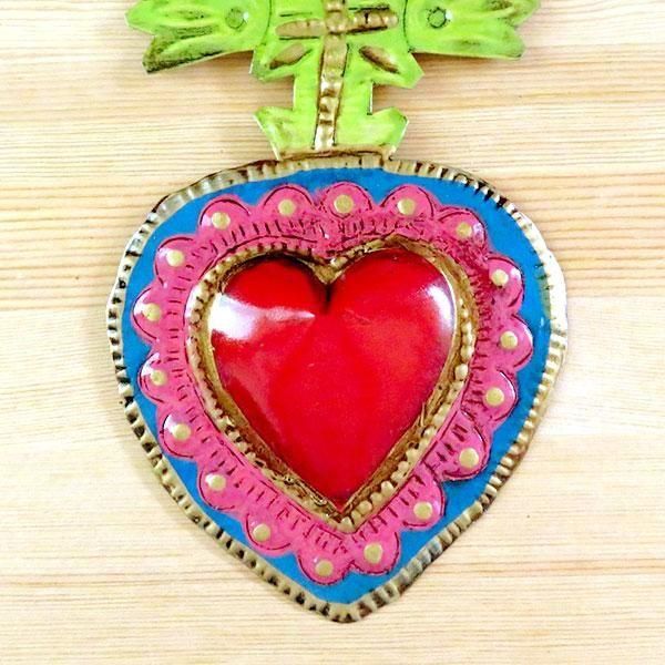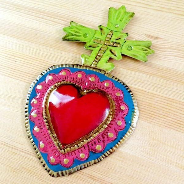 メキシコで作られたハート型ブリキオーナメント。