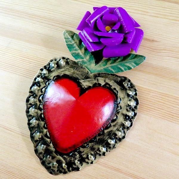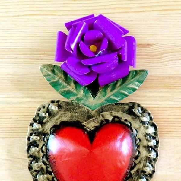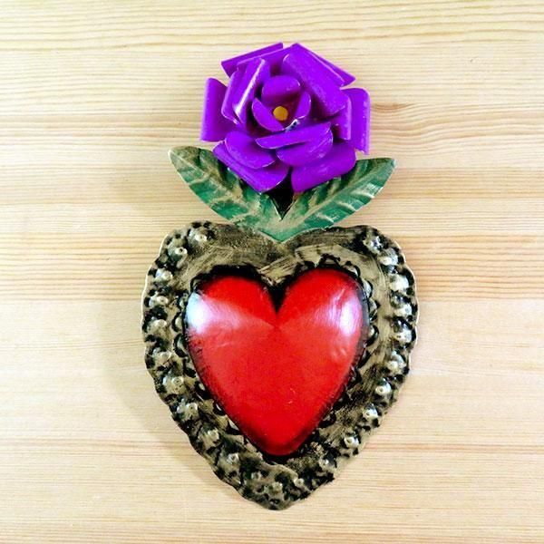 | 商品名 | メキシコ ブリキオーナメント ハート フラワーM(レッド×パープル)[21cm] |