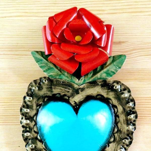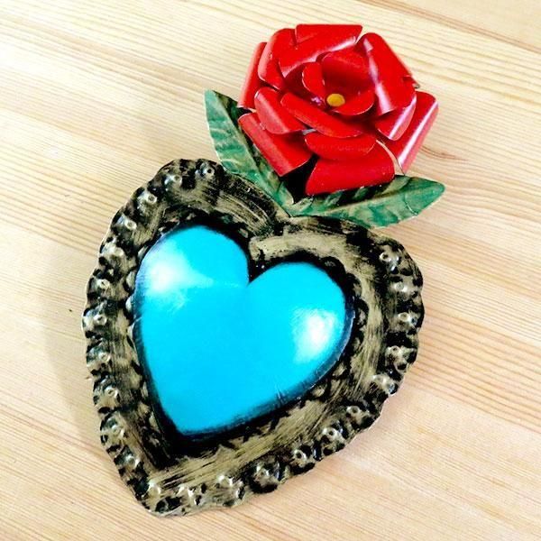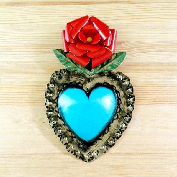| 商品名 | メキシコ ブリキオーナメント ハート フラワーM(ライトブルー×レッド)[21cm] |