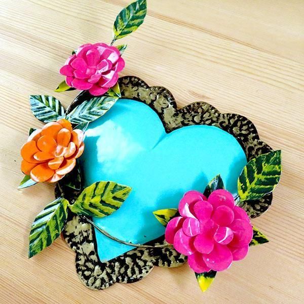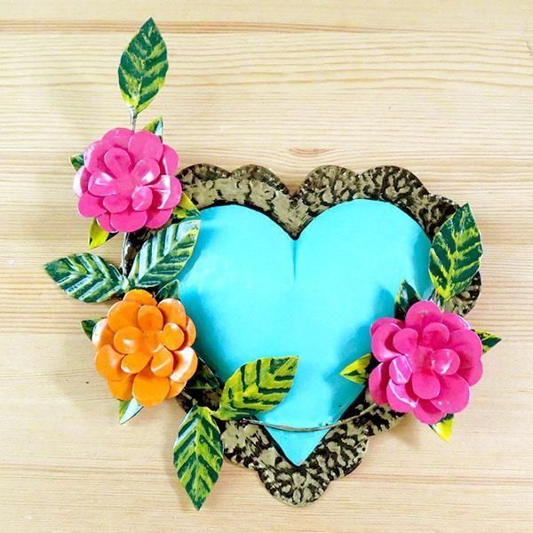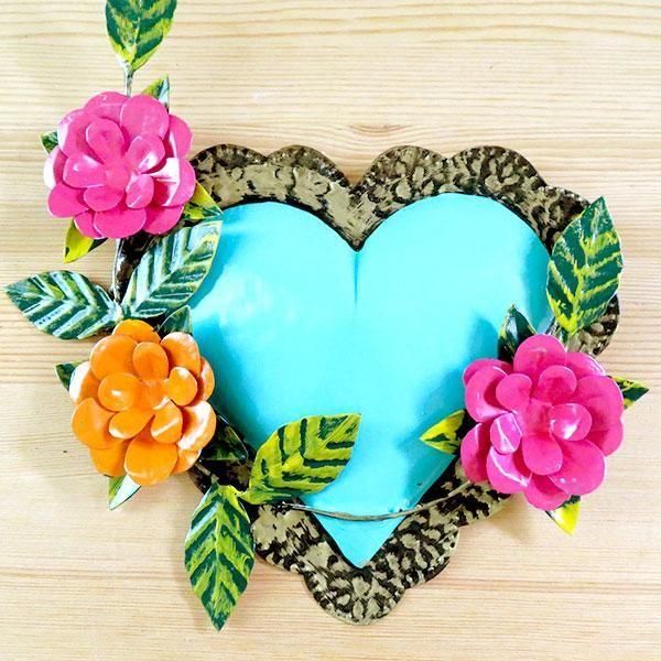 メキシコで作られたハート型ブリキオーナメント。