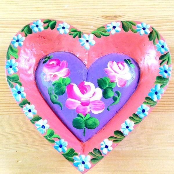 メキシコで作られた、木製のカラフルなハートの壁飾り。