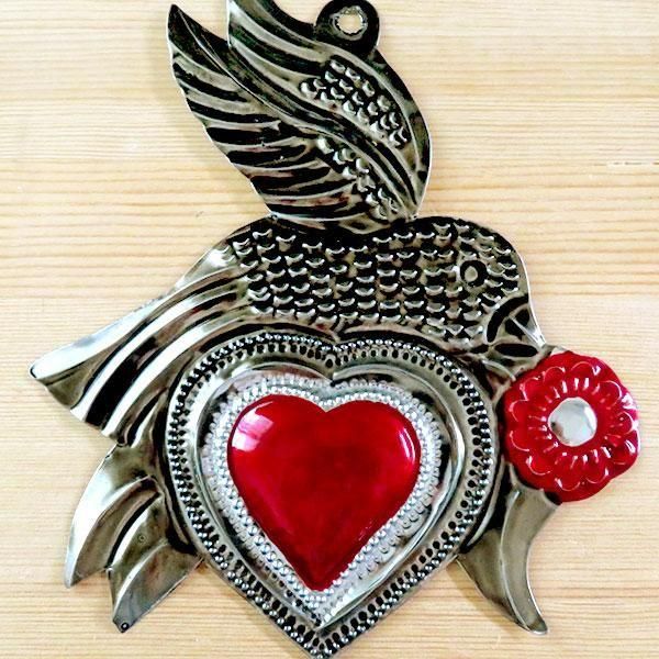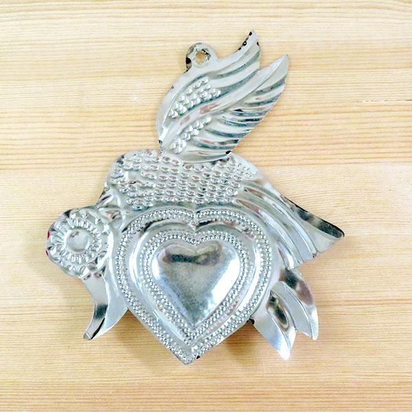 メキシコオアハカ州で有名なブリキアートのハート型オーナメント。