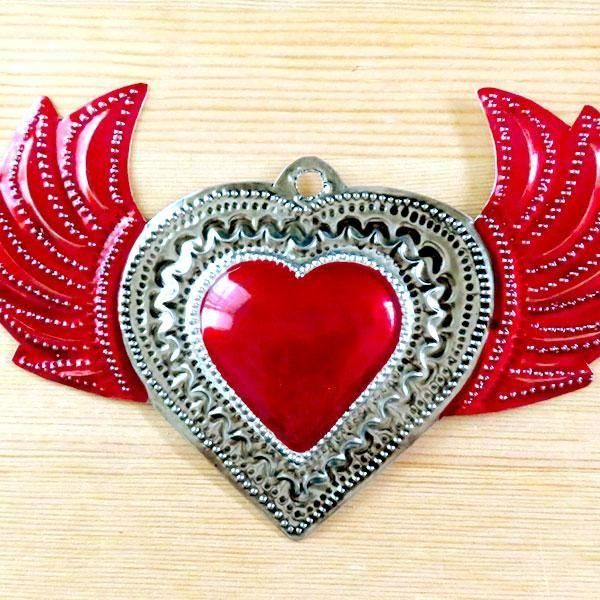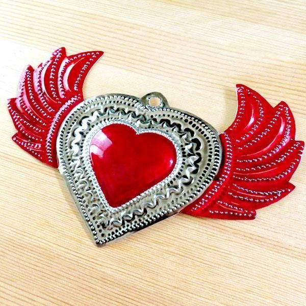 メキシコオアハカ州で有名なブリキアートのハート型オーナメント。