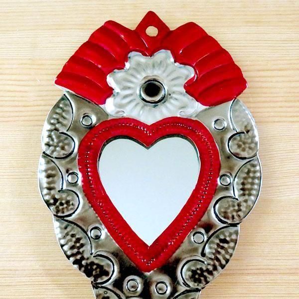 メキシコオアハカ州で有名なブリキアートのハート型の壁掛けミラーのSサイズです。