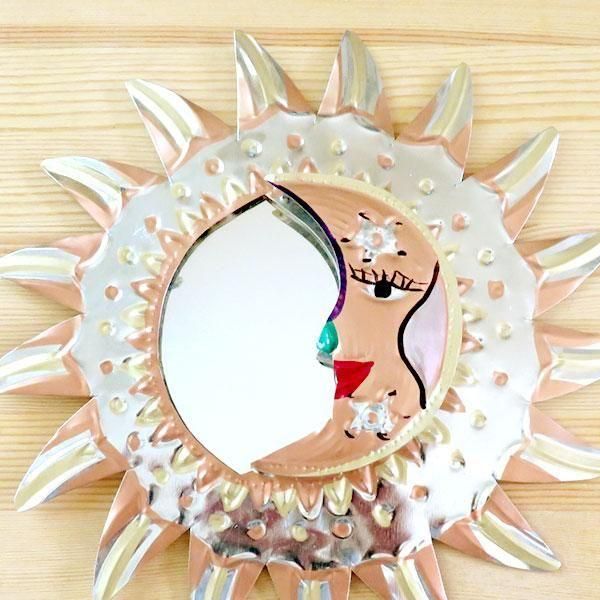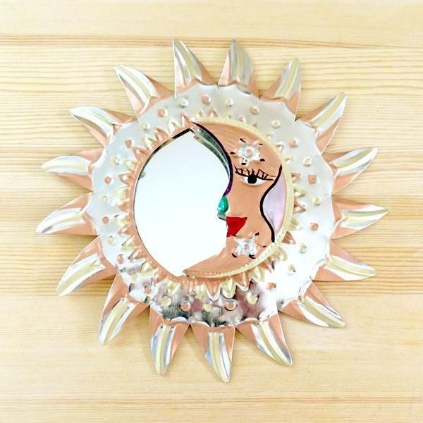 メキシコオアハカ州で有名なブリキアートの太陽と月がモチーフの壁掛けミラーMサイズです。