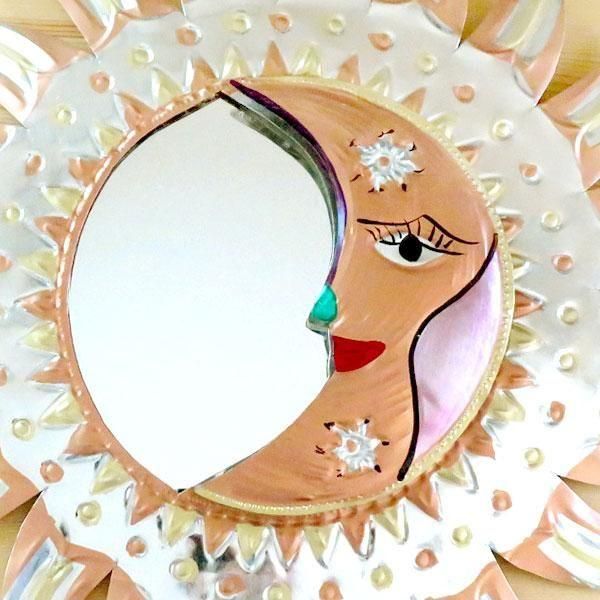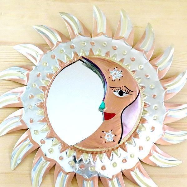 メキシコオアハカ州で有名なブリキアートの太陽と月がモチーフの壁掛けミラーLサイズです。