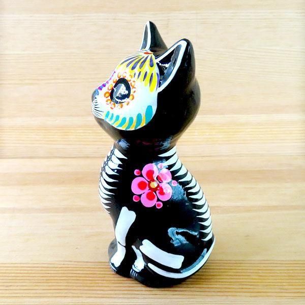 メキシコの猫のガイコツがモチーフの陶器で作られた置物。