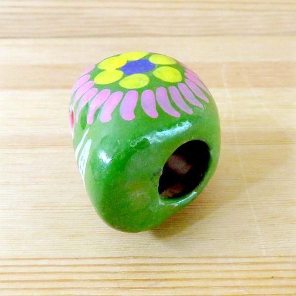 メキシコ 陶器 ガイコツ メキシカンスカル フラワーSS(ライトグリーンB)[4cm]