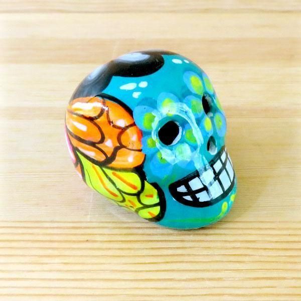メキシコ 陶器 ガイコツ メキシカンスカル フラワーSS(ライトブルー)[4cm]