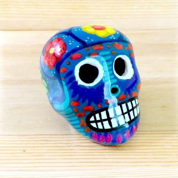 商品名 メキシコ 陶器 ガイコツ メキシカンスカル フラワーS(ブルー)[6cm]