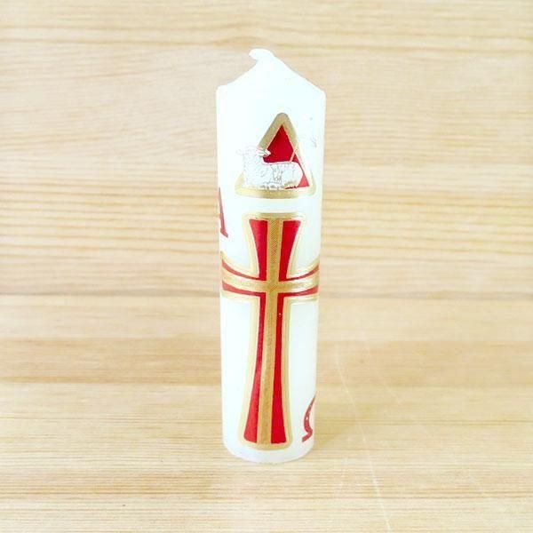 十字架にアルファとオメガが張られた、復活徹夜祭の「光の祭儀」に使われるローソクです。