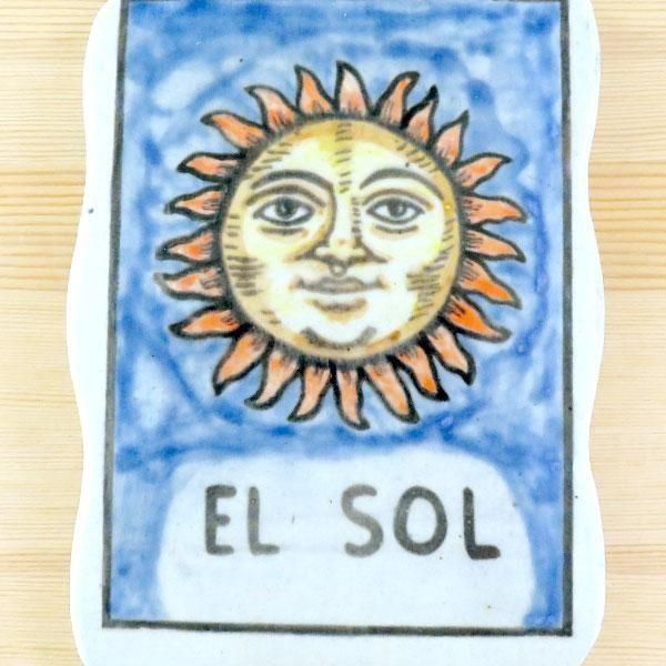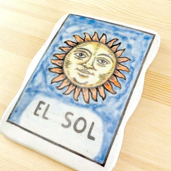 メキシコのビンゴカードゲーム「LOTERIA ロテリア」が描かれた陶器の壁飾り。