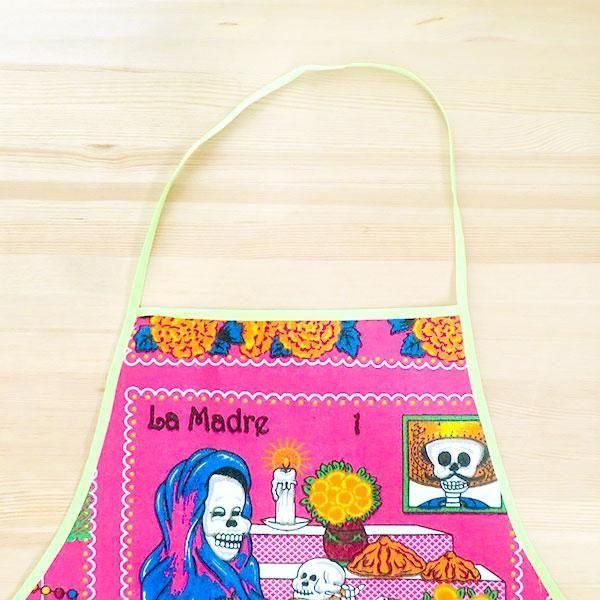 メキシコのガイコツプリントのエプロン。
